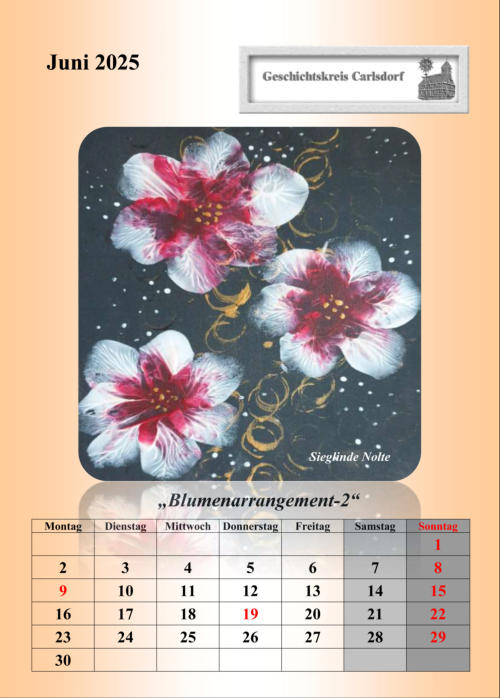 > Carlsdorfer Kalender 2025Januar Februar März April Mai Juni Juli August Septemb. Oktober Novemb. Dezemb. (Titel)> Carlsdorfer Mitteilungsblätter Nr. 33Nr. 34 Nr. 35 Nr. 36 Nr. 37Mai 2020 Juni 2021November 2022 Dezember 2023Dezember 2024