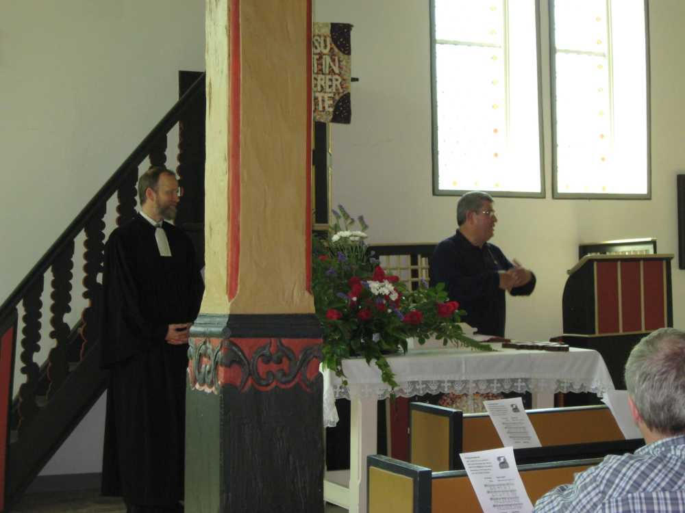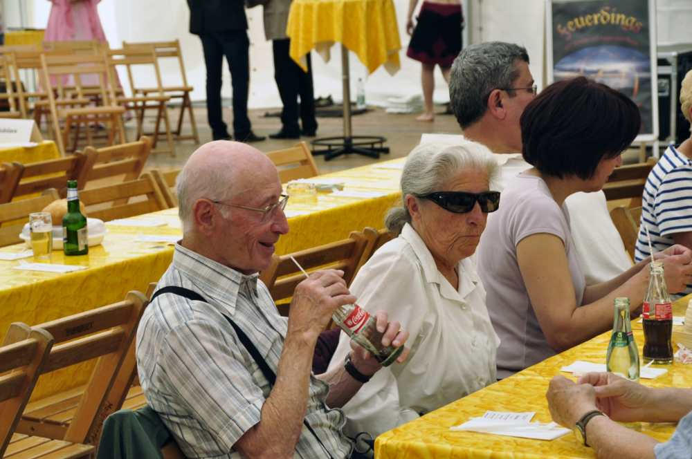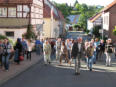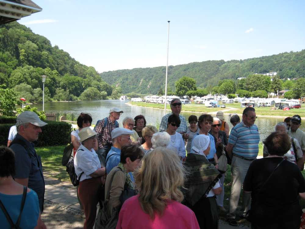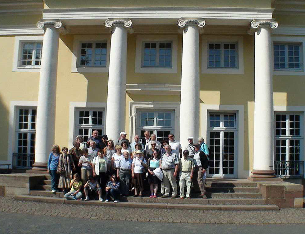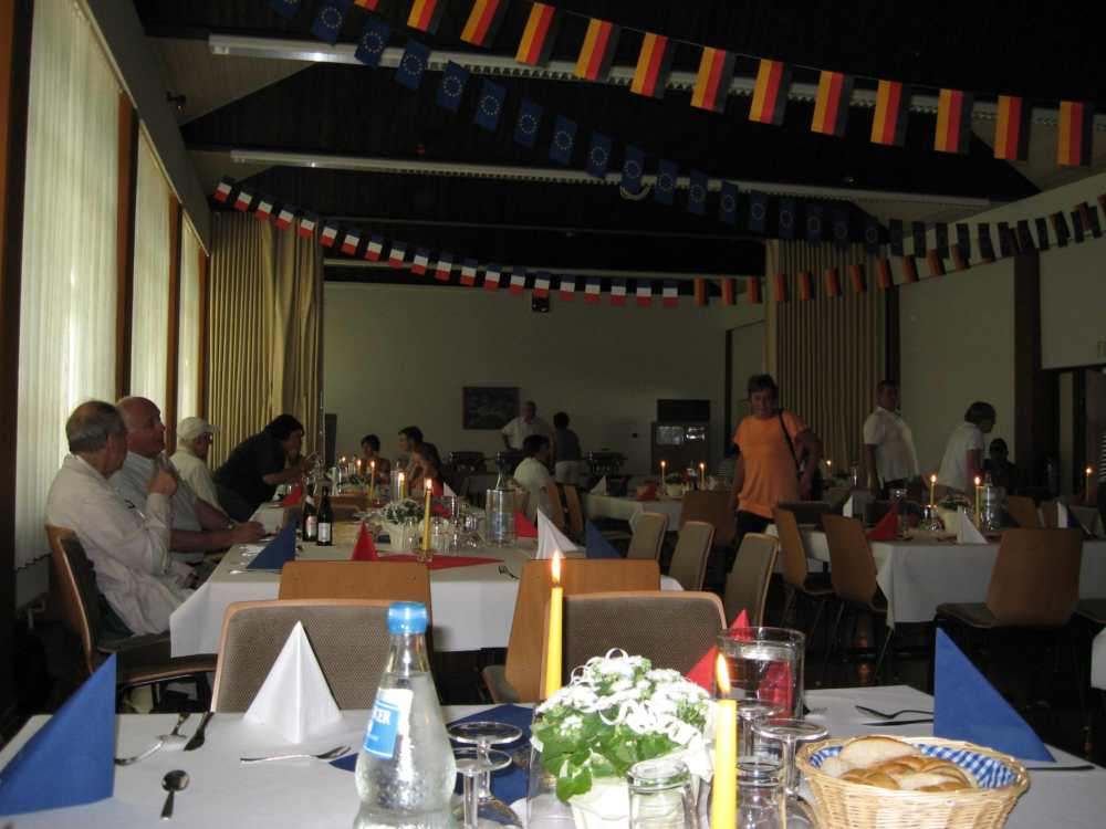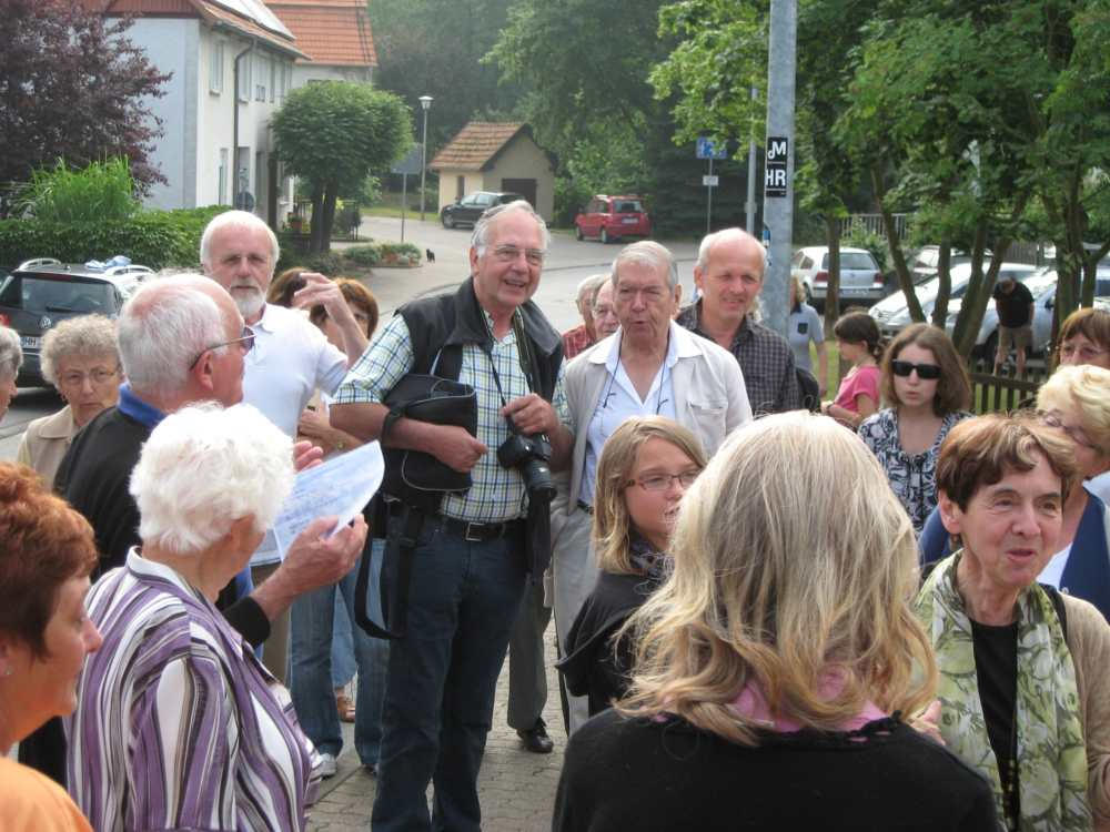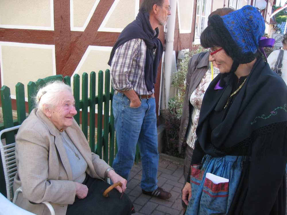 Besuch aus dem Queyras in Carlsdorf2. bis 6. Juni 2011Während des Besuches einer großen Gruppe aus Carlsdorf im Queyras (Frankreich) im Mai 2010, wurde die Einladung zu einem Gegenbesuch nach Carlsdorf überreicht. Seitdem lief die Planung in Carlsdorf und auch in Frankreich auf vollen Touren. Der Termin für den Besuch der Queyrassiner ließ sich leider nicht mit der Carlsdorfer 325-Jahr-Feier koordinieren. Somit fand der Besuch vom 2. bis 6. Juni 2011 statt. Das Besuchsprogramm:Endlich war es so weit. Nach wochenlanger Vorarbeit kamen die Queyrasiner in Carlsdorf an. Sie wurden von vielen Carlsdorfern herzlich empfangen. Die Kinder hatten Fähnchen und winkten eifrig. Es war gelungen alle Gäste bei Carlsdorfer Familien unterzubringen.HIERFÜR DANKE AN ALLE!Nach einer kurzen Begrüßung bei Sekt, Kaffee und Kuchen ging man zu den Gastfamilien. Um 18 Uhr trafen sich alle zur Einweihung der hugenottischen Siedlerstellen - Steckbriefe. Danach kam man , wie an jedem Abend, im Dorfgemeinschaftshaus zum gemeinsamen Essen zusammen, wohin auch die Gastfamilien und alle Carlsdorfer eingeladen waren. Genauso war es morgens beim Frühstück. Dies war eine gute Basis für das persönliche Kennenlernen wobei die Sprache keine Probleme verursachte. Die Tage waren ausgefüllt mit Fahrten, Besuchen und Einladungen: Z. B. Führungen in Bad Karlshafen, Hofgeismar und ein Besuch in Mariendorf. Der Geschichtskreis Mariendorf hatte zu Kaffee und Kuchen eingeladen. Die Queyrasiner waren begeistert von dem großen Kuchenangebot. Man war in Sababurger Tierpark und im Park Wilhelmshöhe bei den Wasserspielen. Die Stadt Hofgeismar hatte am Samstag den 4.Juni zum Frühschoppen mit Imbiss in das Festzelt vom zeitgleich stattfindenden Viehmarkt eingeladen. So vergingen die Tage wie im Flug und der 6.Juni, der Abreisetag, war gekommen. Man musste Abschied nehmen. Ein letztes gemeinsames Frühstück und viele Wünsche für eine gute Heimfahrt machten den Abschied nicht leichter. Es wurde wieder kräftig gewunken. Mit lautem Gehupe verabschiedeten sich die Queyrasiner.