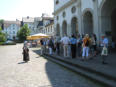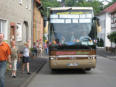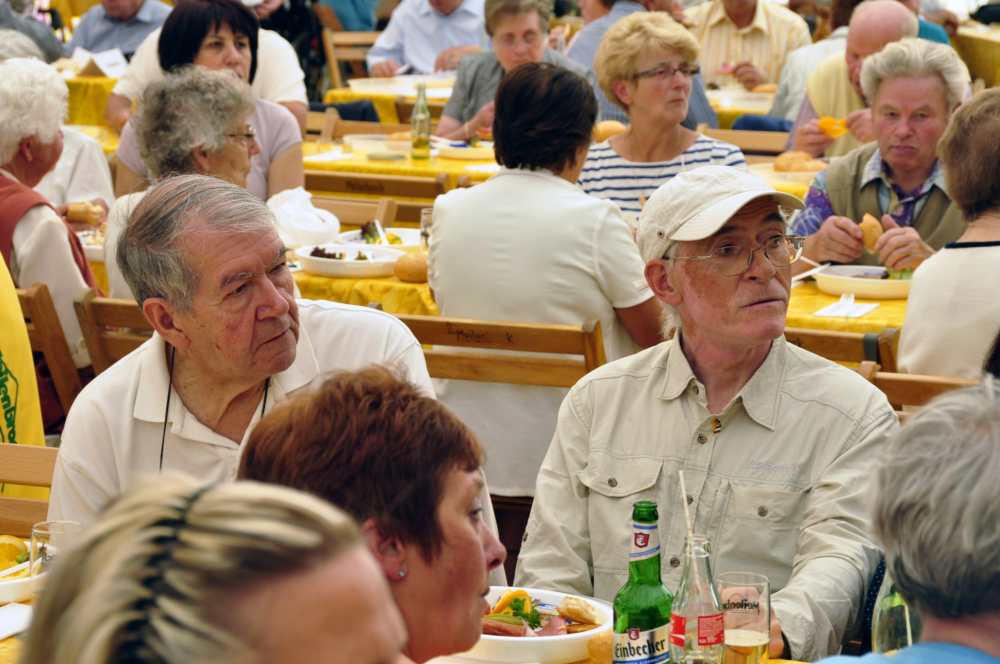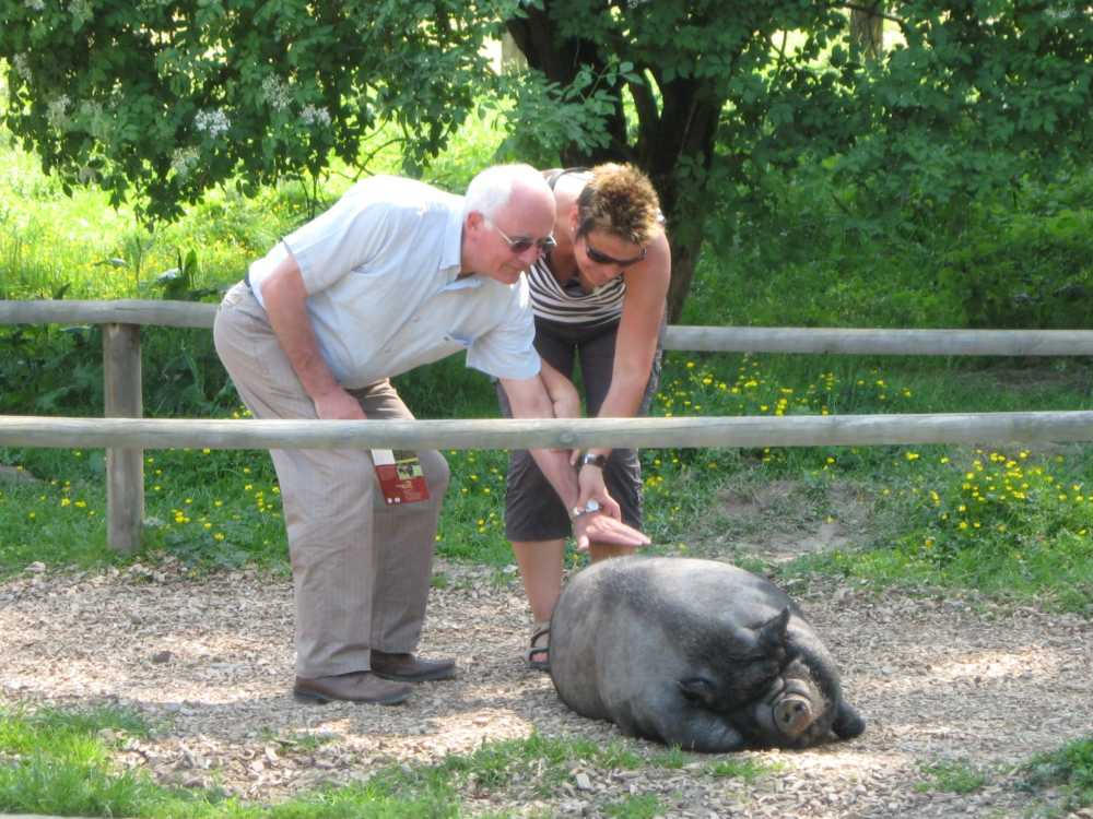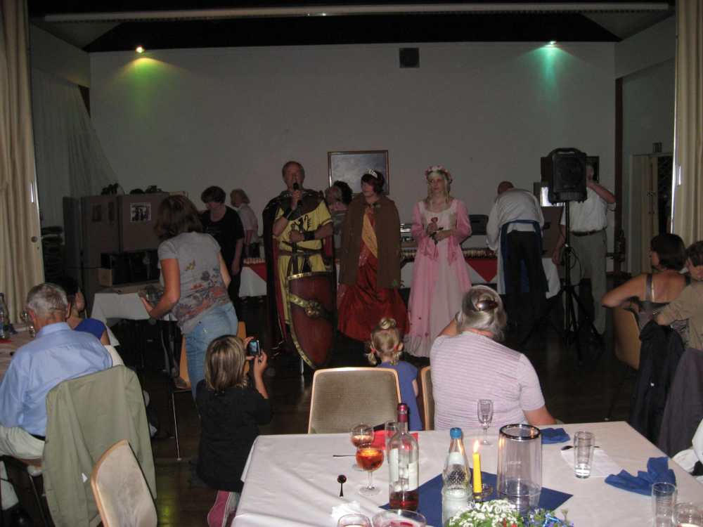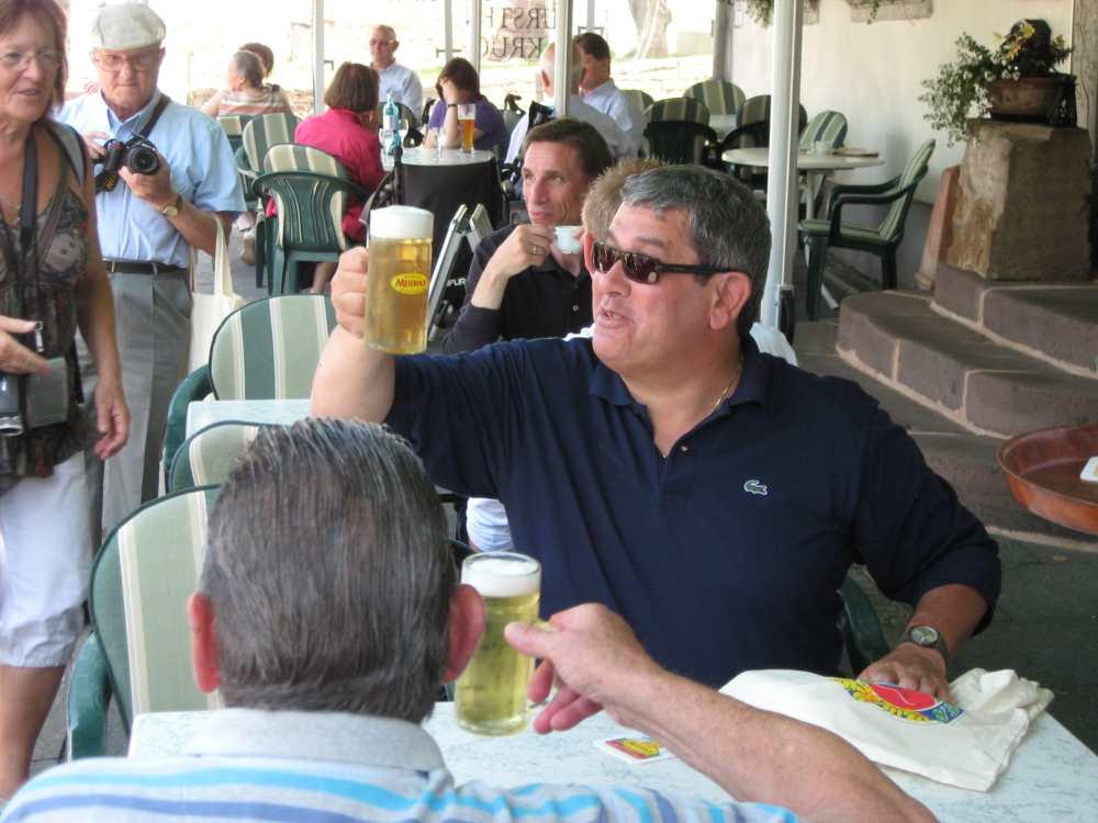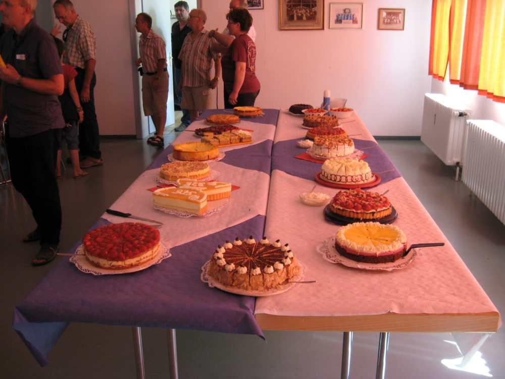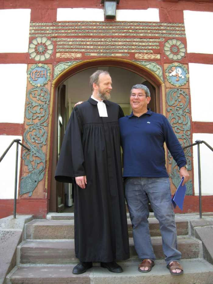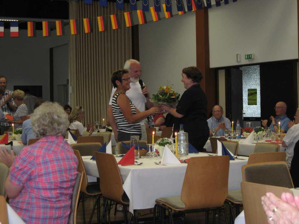 Besuch aus dem Queyras in Carlsdorf2. bis 6. Juni 2011Während des Besuches einer großen Gruppe aus Carlsdorf im Queyras (Frankreich) im Mai 2010, wurde die Einladung zu einem Gegenbesuch nach Carlsdorf überreicht. Seitdem lief die Planung in Carlsdorf und auch in Frankreich auf vollen Touren. Der Termin für den Besuch der Queyrassiner ließ sich leider nicht mit der Carlsdorfer 325-Jahr-Feier koordinieren. Somit fand der Besuch vom 2. bis 6. Juni 2011 statt. Das Besuchsprogramm:Endlich war es so weit. Nach wochenlanger Vorarbeit kamen die Queyrasiner in Carlsdorf an. Sie wurden von vielen Carlsdorfern herzlich empfangen. Die Kinder hatten Fähnchen und winkten eifrig. Es war gelungen alle Gäste bei Carlsdorfer Familien unterzubringen.HIERFÜR DANKE AN ALLE!Nach einer kurzen Begrüßung bei Sekt, Kaffee und Kuchen ging man zu den Gastfamilien. Um 18 Uhr trafen sich alle zur Einweihung der hugenottischen Siedlerstellen - Steckbriefe. Danach kam man , wie an jedem Abend, im Dorfgemeinschaftshaus zum gemeinsamen Essen zusammen, wohin auch die Gastfamilien und alle Carlsdorfer eingeladen waren. Genauso war es morgens beim Frühstück. Dies war eine gute Basis für das persönliche Kennenlernen wobei die Sprache keine Probleme verursachte. Die Tage waren ausgefüllt mit Fahrten, Besuchen und Einladungen: Z. B. Führungen in Bad Karlshafen, Hofgeismar und ein Besuch in Mariendorf. Der Geschichtskreis Mariendorf hatte zu Kaffee und Kuchen eingeladen. Die Queyrasiner waren begeistert von dem großen Kuchenangebot. Man war in Sababurger Tierpark und im Park Wilhelmshöhe bei den Wasserspielen. Die Stadt Hofgeismar hatte am Samstag den 4.Juni zum Frühschoppen mit Imbiss in das Festzelt vom zeitgleich stattfindenden Viehmarkt eingeladen. So vergingen die Tage wie im Flug und der 6.Juni, der Abreisetag, war gekommen. Man musste Abschied nehmen. Ein letztes gemeinsames Frühstück und viele Wünsche für eine gute Heimfahrt machten den Abschied nicht leichter. Es wurde wieder kräftig gewunken. Mit lautem Gehupe verabschiedeten sich die Queyrasiner.